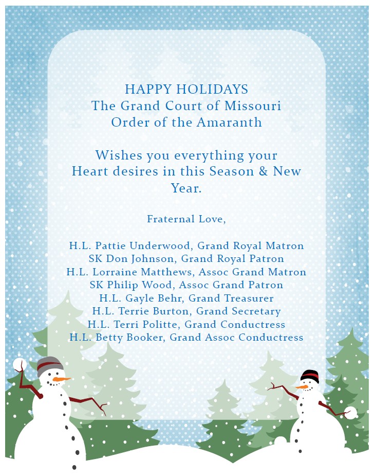 To its present members, the “Order of the Amaranth” means a challenge to build higher and stronger upon these foundations of fraternal love and service. It means the hand of fraternal friendship to those in distress. It means thinking and remembering about its members in their hours of sorrow and sickness. Most of all, it means the opportunity to serve our fellow human beings, to enjoy the close fraternal ties of mutual respect and understanding to enrich our lives with friendship worth far more than gold or silver.